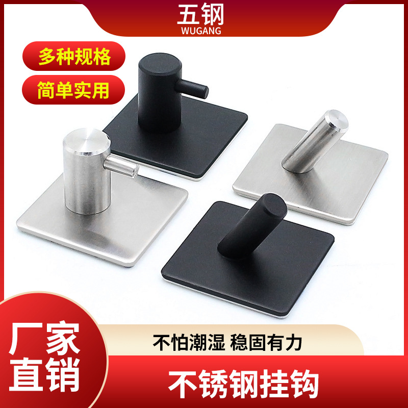 厂家直供简约免打孔不锈钢挂钩衣钩五金配件单钩免钉门后钩挂衣钩