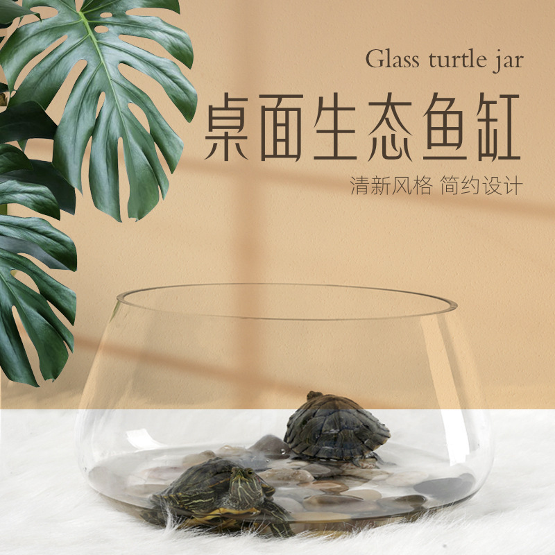 新型水槽ガラス円形デスク緑羅水培家庭用小魚創意透明小型ミニテーブル夷陵