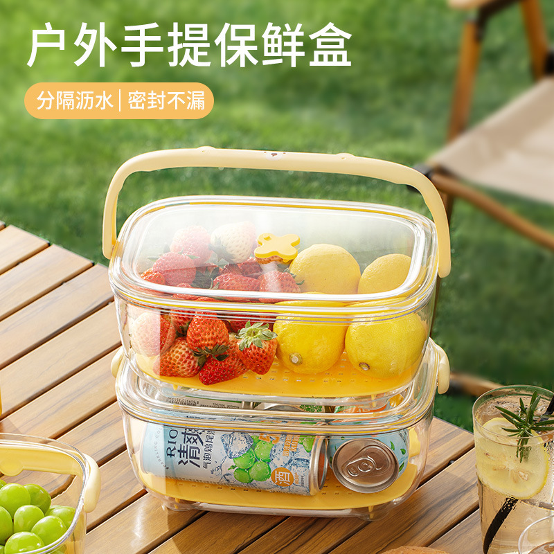 ポータブル鮮度保持ボックス 春のお出かけ キャンプ ピクニック 収納ボックス 大容量 密閉透明ボックス お出かけ用 フルーツ水切り鮮度保持ボックス