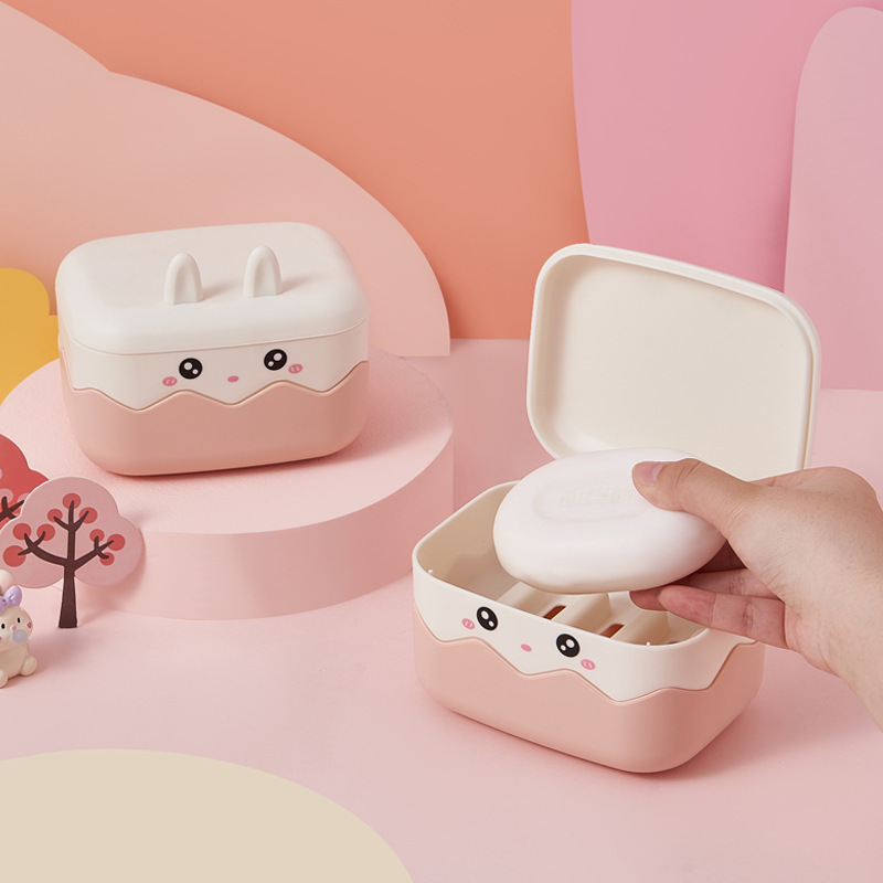 漫画ウサギの石鹸箱ポータブル密封された防水二層排水ボックス寮石鹸収納ボックス