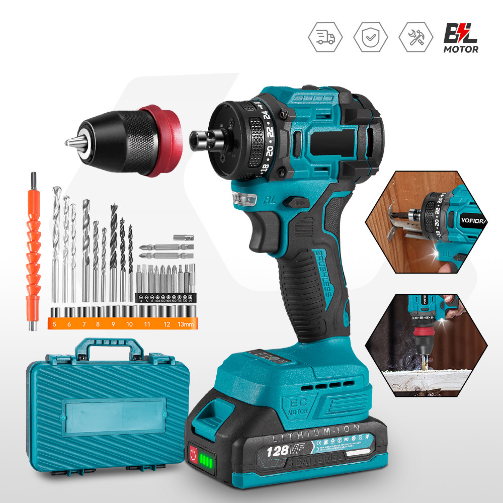メーカー製リチウム電池式ドライバー、ブラシレス、二段階速度調整、電動ドリル、スクリュードライバー、多機能、ハンドヘルド、インパクト、リチウム電池式、ブラシレス