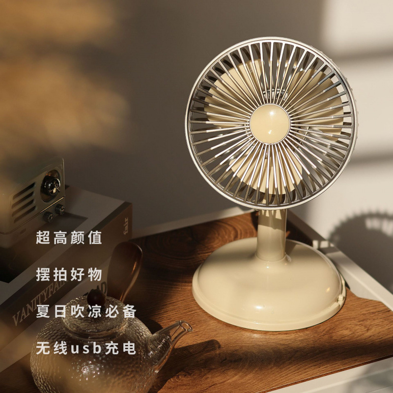 レトロミニデスクトップ小型ファン USB 充電式小型ファンポータブル屋外キャンプデスクトップファン寮
