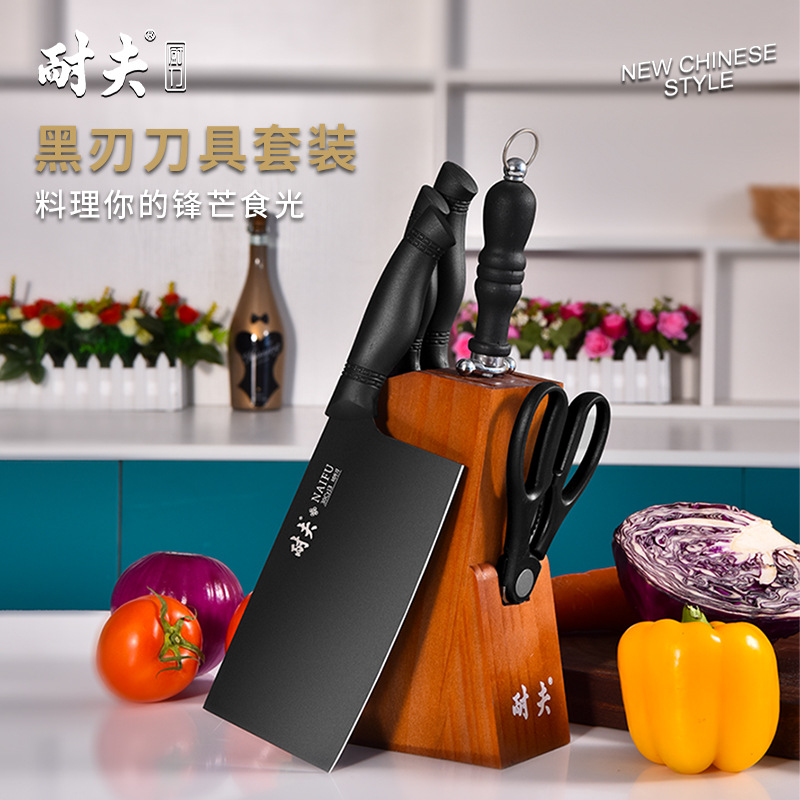 耐夫ステンレス黒刃フルセット包丁セット六点セットキッチン家庭用ギフトセット切れ味刃物