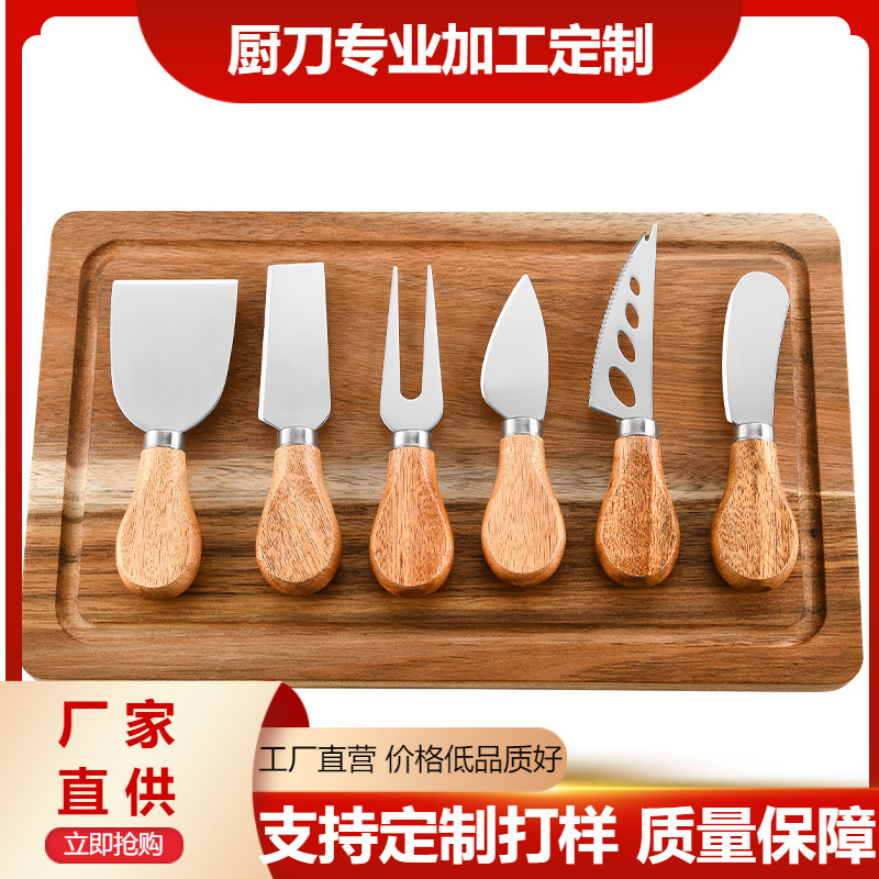 ステンレス製チーズナイフセット、ベーキングナイフ、バターチーズナイフ、木製ボックス、ピザナイフ、フォーク、スパチュラ、必需品、越境で人気商品