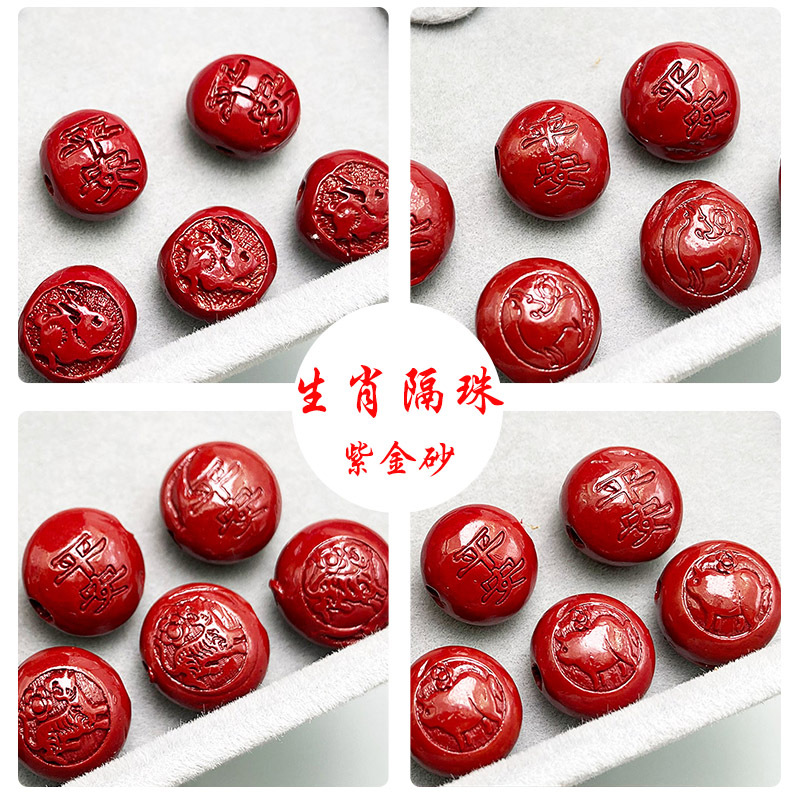 天然紫金砂朱砂十二生肖散珠本命年牛虎ブレスレットdiy手作りアクセサリー部品