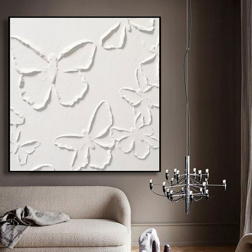 純粋な手描きの大きな白い蝶の油絵のソファーの背景の客間の寝室は玄関のレストランの筋理の装飾画を描きます。