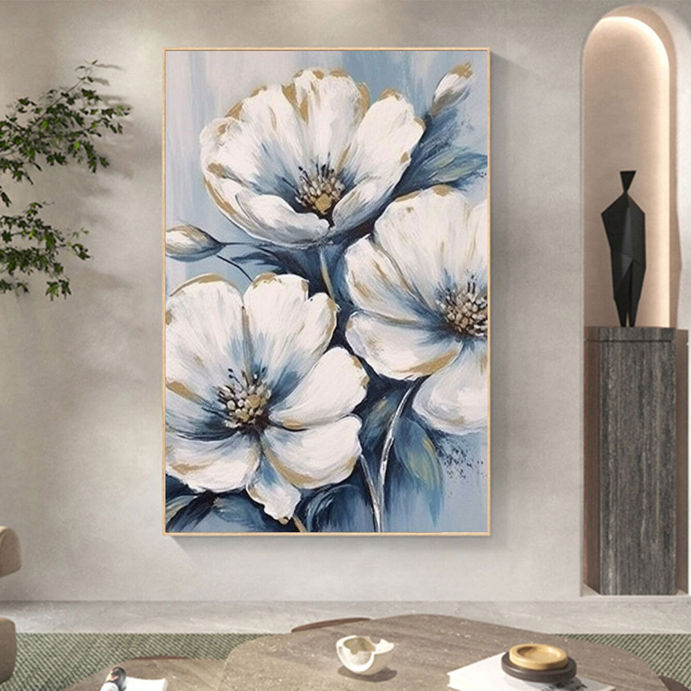 外国貿易純手描き油絵大副抽象青系花玄関レストラン客間装飾画筋理油絵
