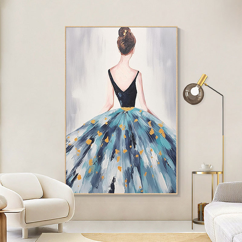 外国貿易の純粋な手描きの油絵の大きい副の抽象的な青い後ろ姿の寝室の玄関のレストランの客間の装飾画の筋理の油絵