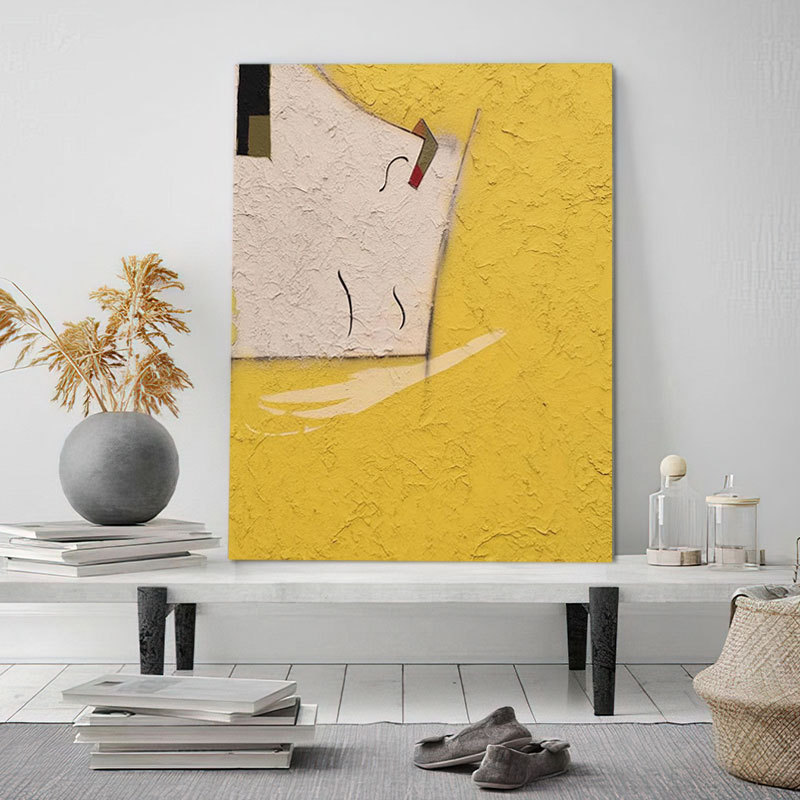 レトロ純手描き油絵大副抽象黄色系寝室画玄関レストラン客間装飾画筋理油絵