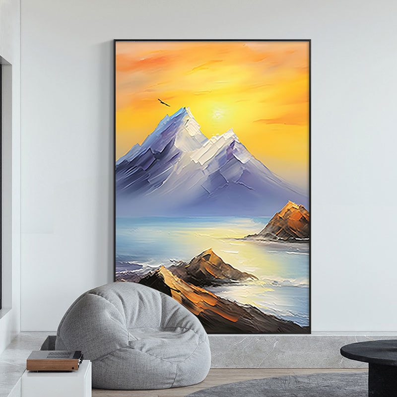 外国貿易純手描き油絵大副抽象日の出山水寝室玄関レストラン客間装飾画筋理油絵