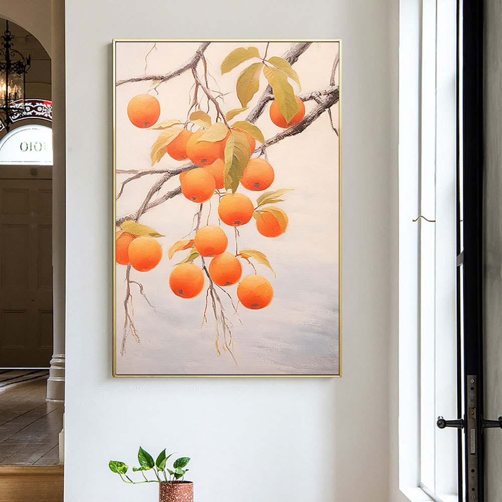 新中国式純手描き油絵抽象万事如意柿玄関レストラン客間装飾画筋理油絵