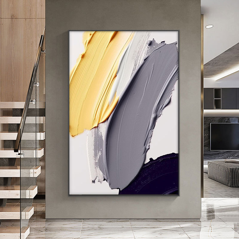 外国貿易の純粋な手描きの油絵の大きい副の抽象的な北欧の軽い豪華な玄関のレストランの客間の装飾画の筋理の油絵