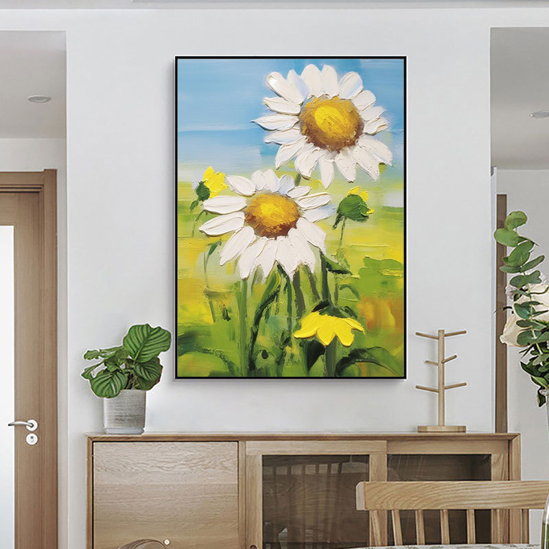 クロスボーダー手描き油絵大副抽象花寝室画玄関レストラン客間装飾画筋理油絵