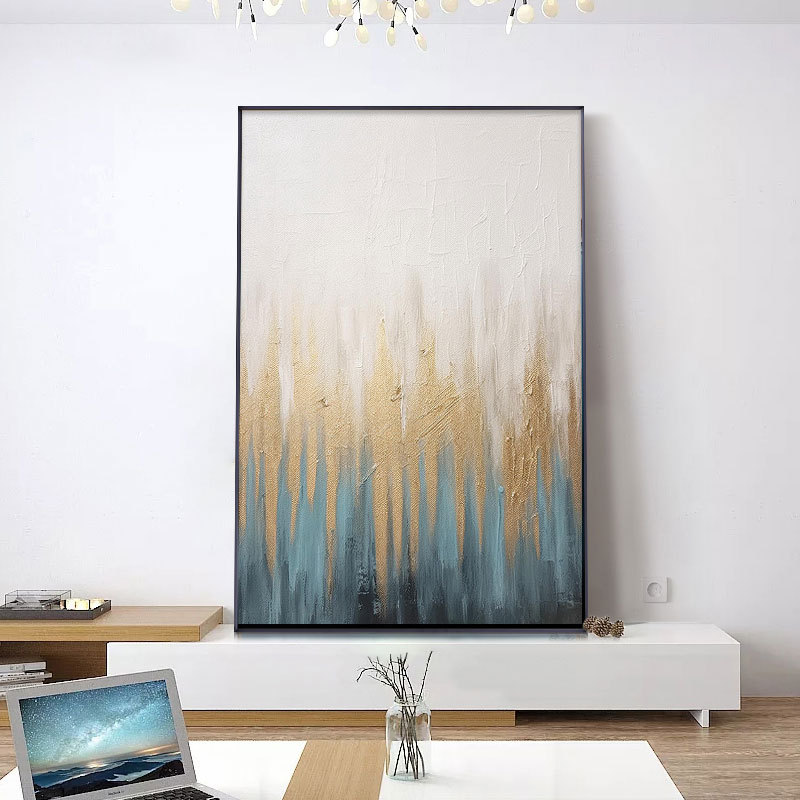 クロスボーダー手描き油絵大副抽象青系寝室画玄関レストラン客間装飾画筋理油絵