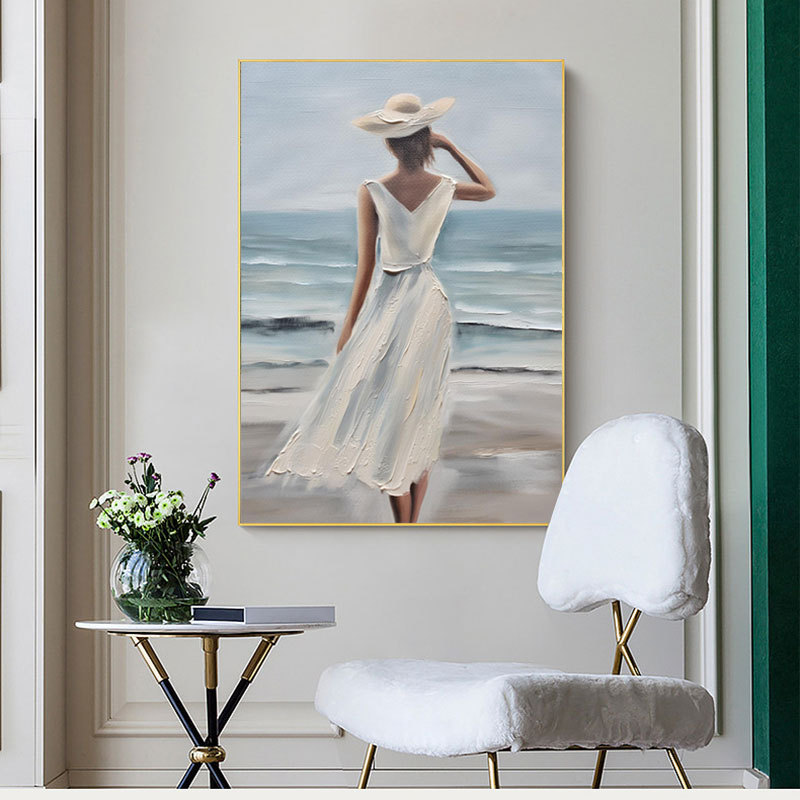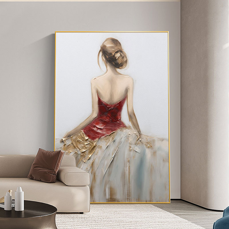 クロスボーダー純手描き油絵優雅後ろ姿女性寝室画玄関レストラン客間装飾画筋理掛け画