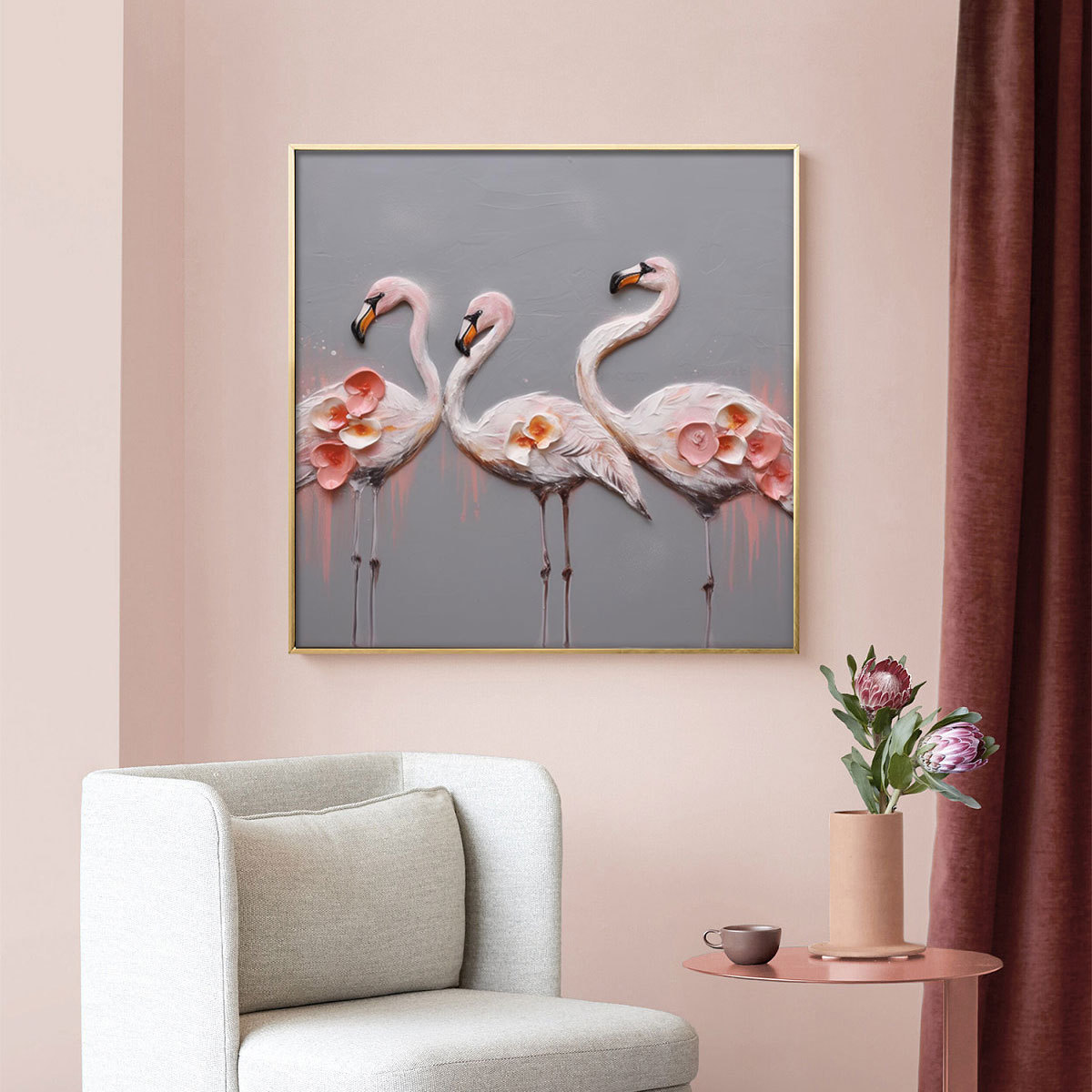 クロスボーダー純手描きフラミンゴ油絵ソファー背景壁客間寝室玄関レストラン装飾画筋理画