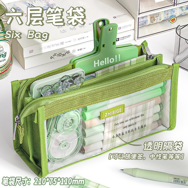 大容量ペンケース六層透明多機能収納学生インスタ風高級感ペンケース卸
