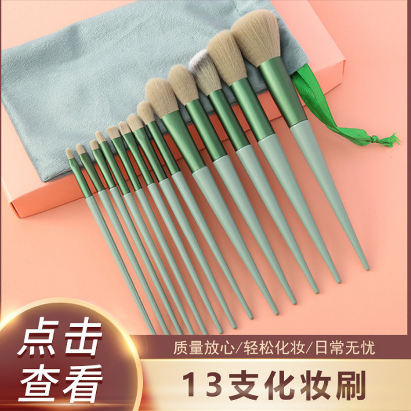 抹茶緑13本化粧ブラシ四季青ハイライトブラシ超ソフト化粧セットブラシあごブラシ赤散粉修理ブラシ