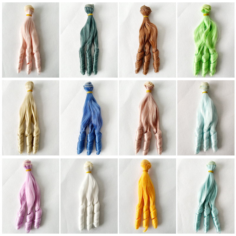 雅楽bjdかつらの髪は高温の糸の髪のカラーの中で巻きます15cmの子供の毛の束の綿の人形を掛けます。