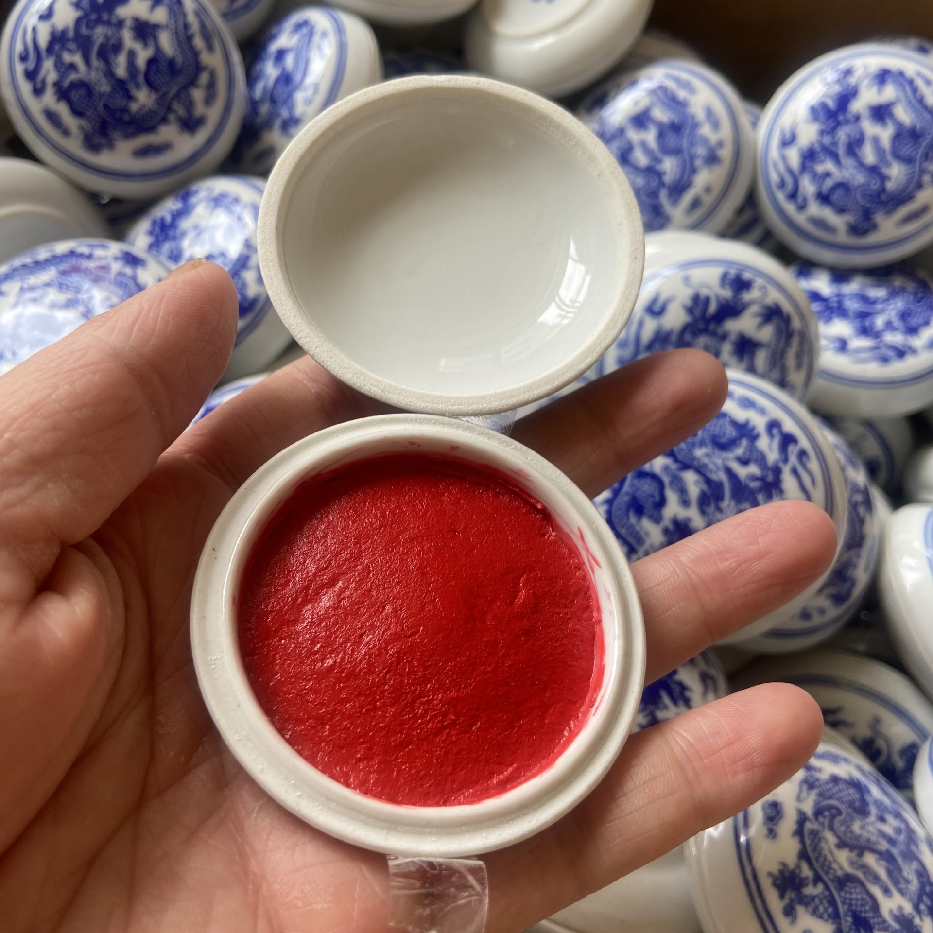 陶磁器の青と花の磁器の鳥の花の香りは泥の箱の書画を印刷します。