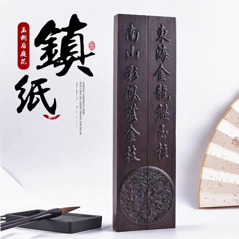 レリーフ黒木鎮尺30cm38cm錦箱書道鎮尺圧紙実木文房四宝工芸品町