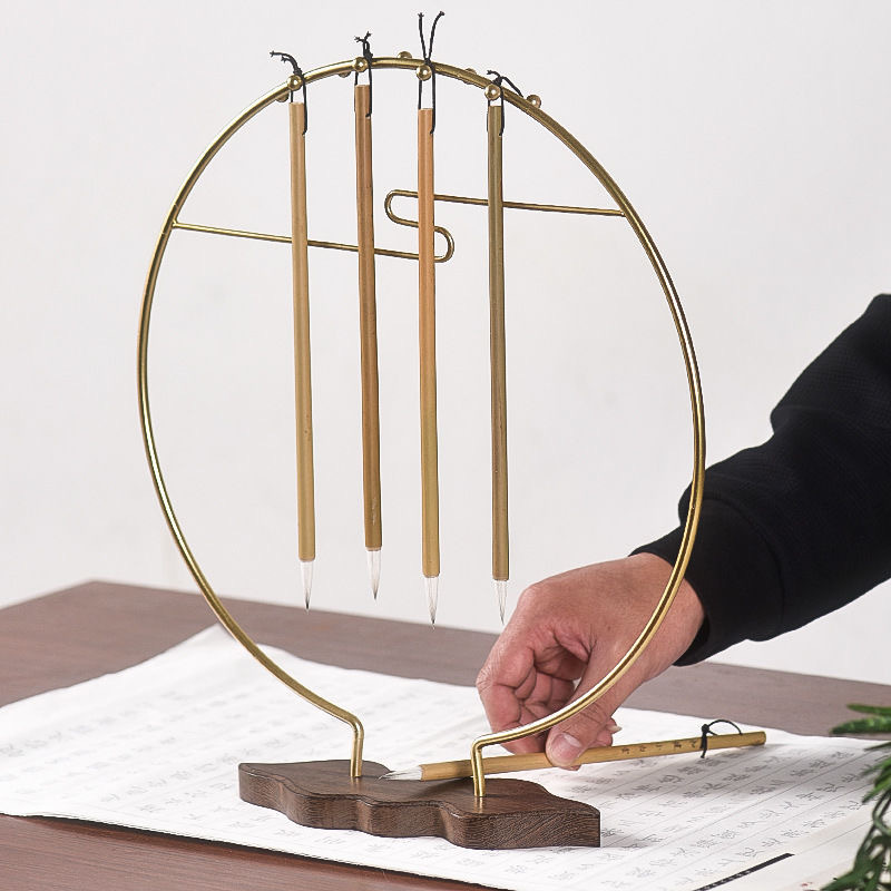 円形の鉄の芸の書道の学生の創意の筆は筆の文房の4宝の古風な骨組みの枠の銅の筆を掛けます