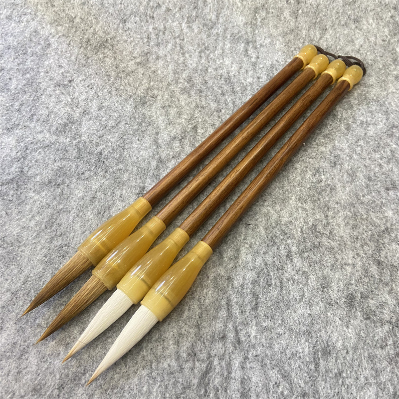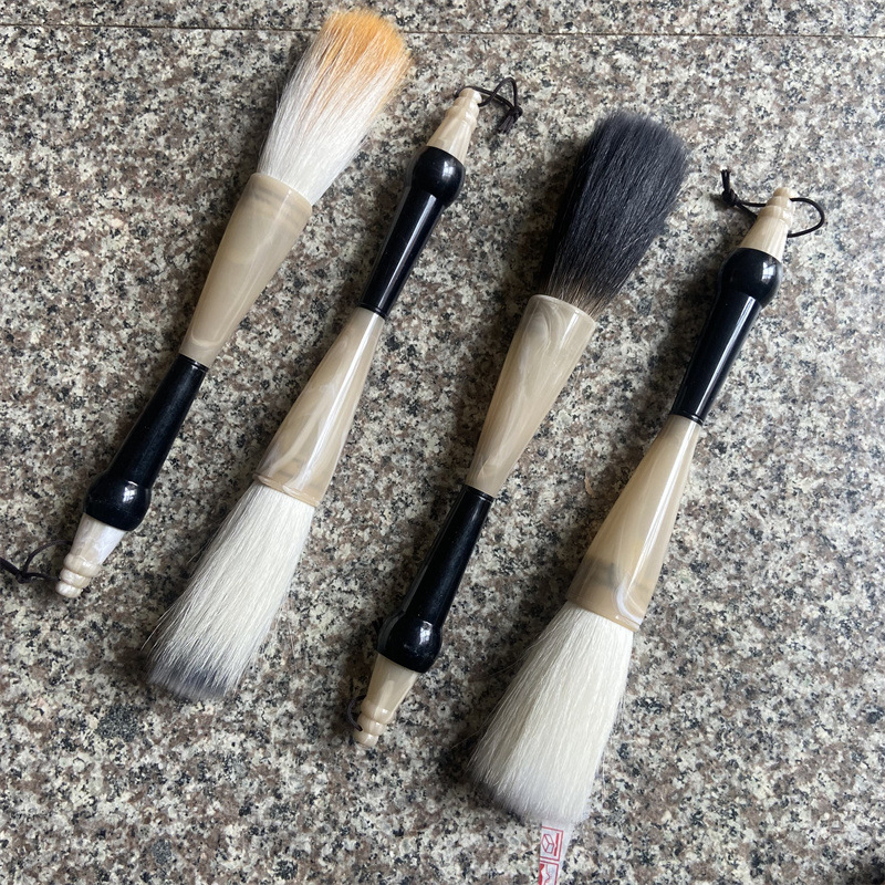 牛の角のプラスチックの竿をまねて毛筆を持ち上げます。