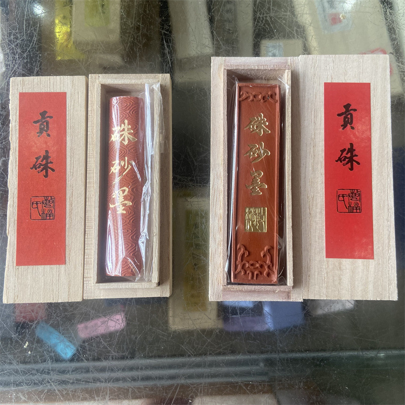 万年紅箱入り墨条5銭1両墨条墨塊朱砂紅手作り硯台墨条学生墨錠