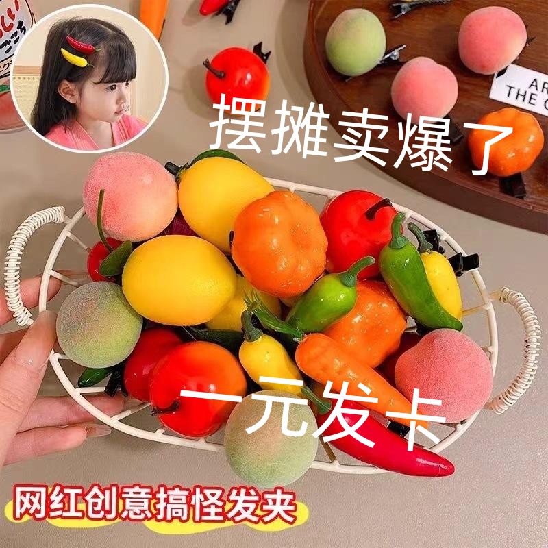 模擬食は漫画の果物のヘアピンを遊んで露店の露店の夜市の1元のヘアピンのネットの赤い爆発の爆発のかわいいヘアピンの女の子を並べます。