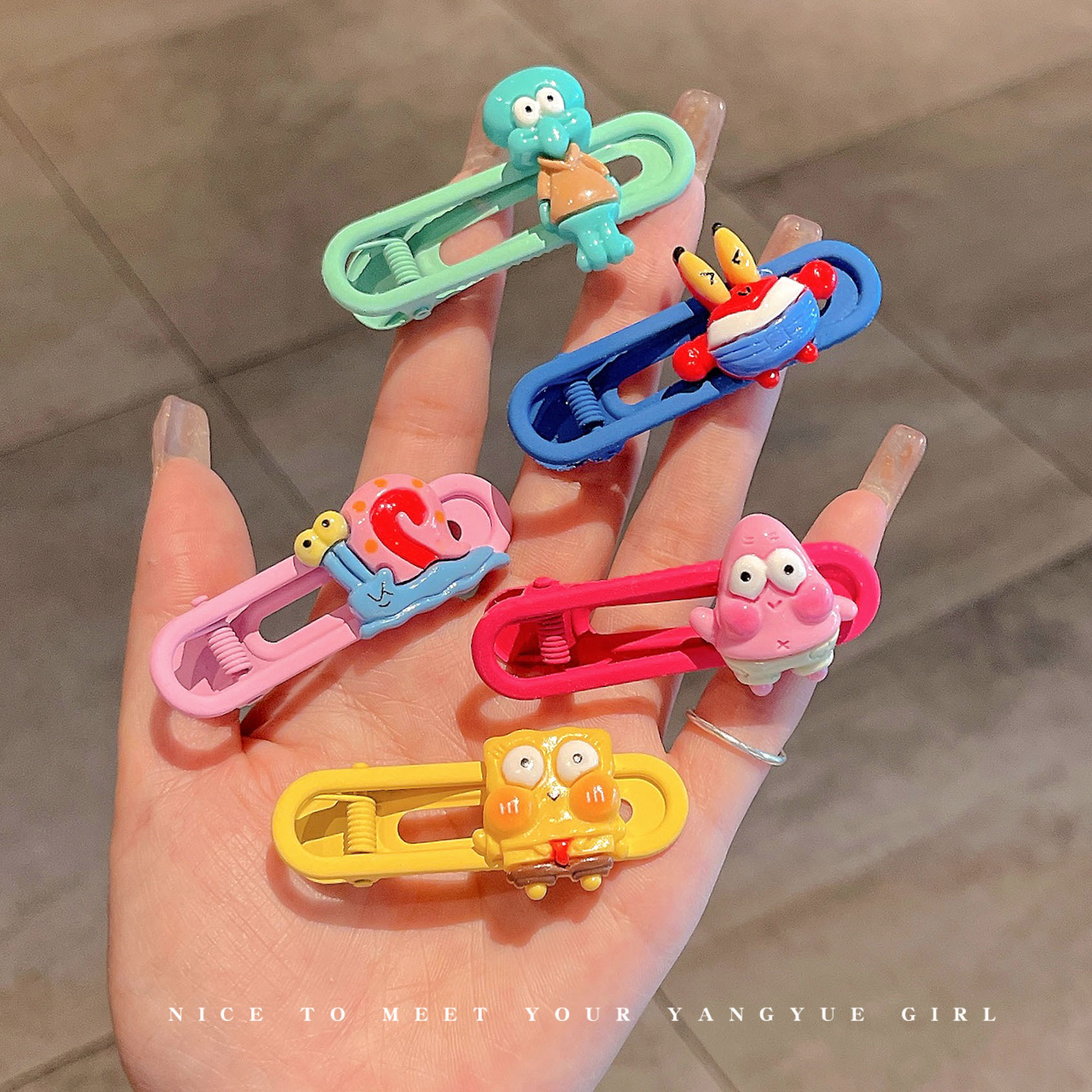 かわいいクッキートーストチーズのヘアピンとアヒルの口のサイドにキャンディーの色を挟んでいます。