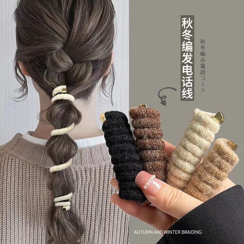 毛糸直条電話線ヘアリング編み神器女性が低馬尾ヘアロープ輪ゴム頭飾り高弾力ヘアロープ