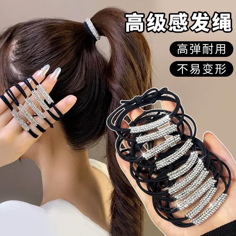 新商品のラインストーンの髪輪の高弾力の頭縄は合わせて丈夫な髪の皮の筋の女性の高級感の丸子の頭の高い馬尾を刺します。