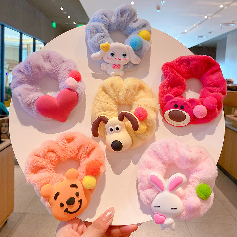 子供のかわいい漫画のひもの小さい女の子のイチゴの熊の大腸のシュシュの女の子の高弾力は髪の飾りを傷つけません。