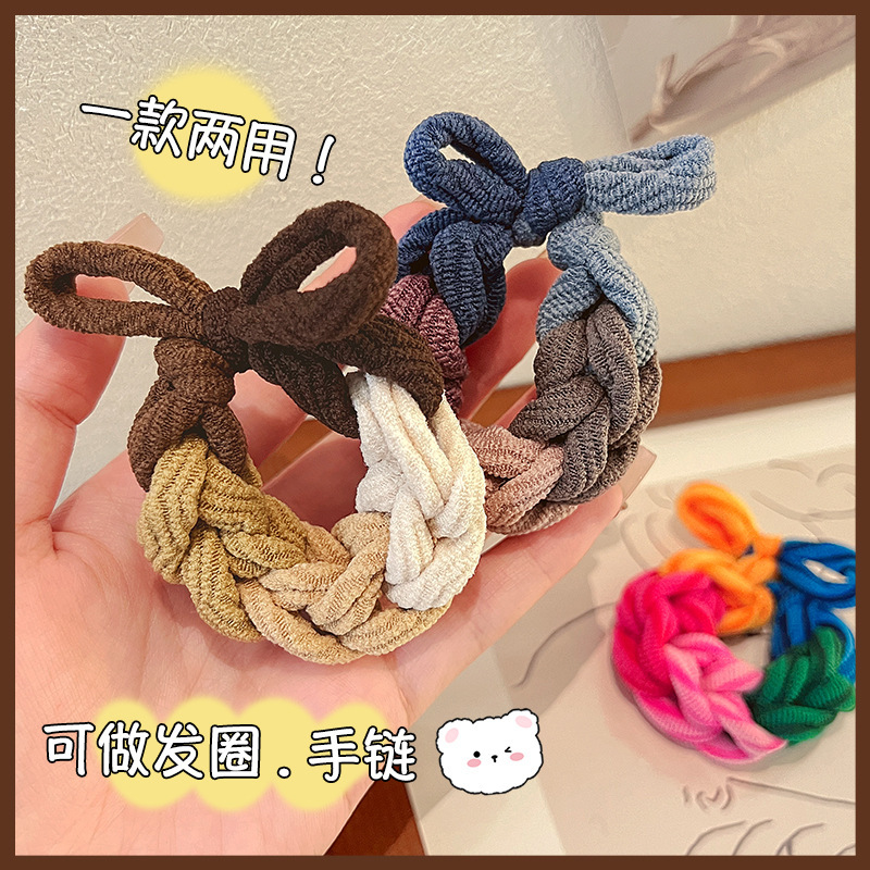 ポニーテールがきれいですね ~ 秋冬電話線編み髪飾りネット赤新高級感髪飾りかわいい髪輪