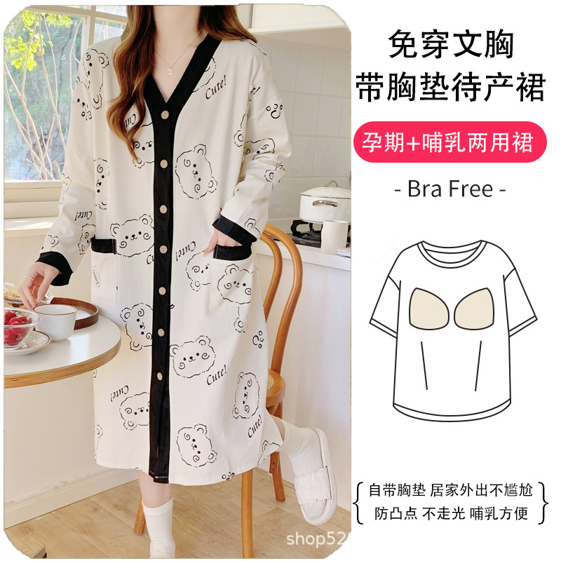胸パッド付き月子服産婦出産予定スカート妊婦パジャマ授乳パジャマ春秋純綿妊娠期入院専用