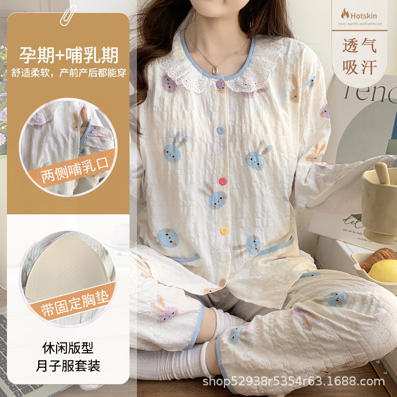 月子服夏薄手産後ガーゼ妊婦授乳パジャマ春秋純綿産婦座り月授乳ホームウェア