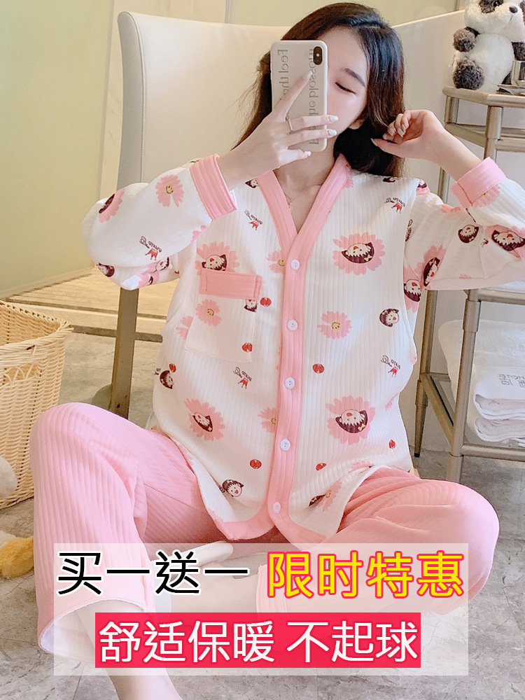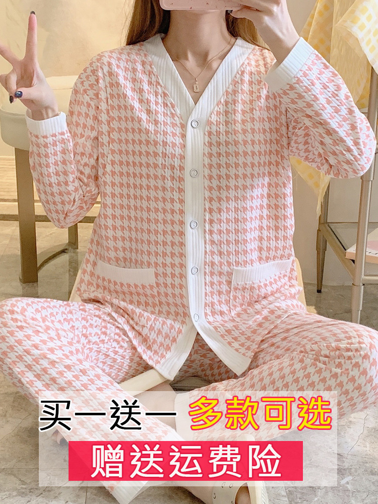 空気綿月子服秋冬純綿産後授乳妊婦パジャマ冬産婦退院授乳ホームウェア