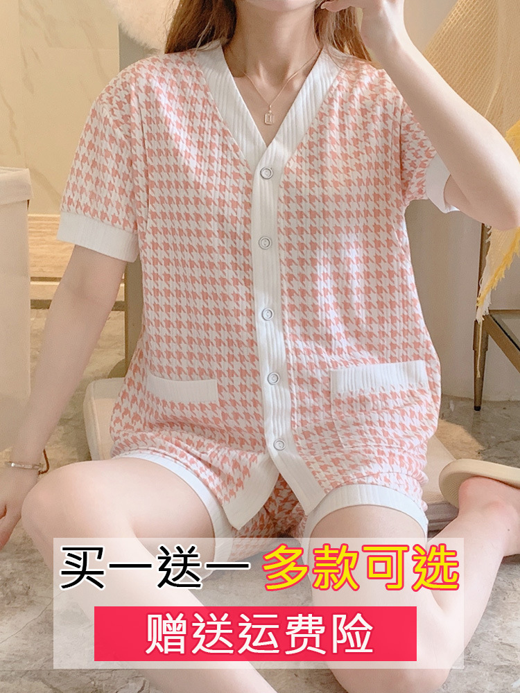 半袖哺乳パジャマ女性の薄い夏の純綿妊婦服産婦が汗を吸う月子服4月の出産後に外出する5