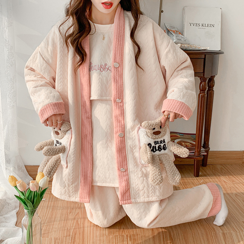 冬の空気綿月子服冬の産後産婦授乳妊婦パジャマ秋冬に妊娠期間を厚くする三点セット