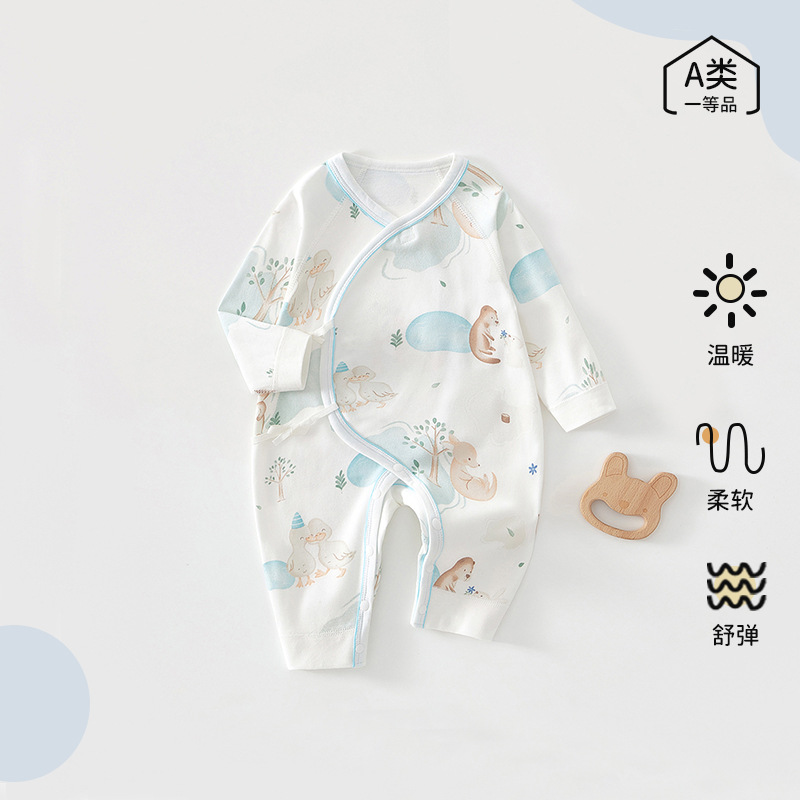 赤ちゃん服春秋綿a類無骨新生児和尚服0-6月紐連体服赤ちゃん服