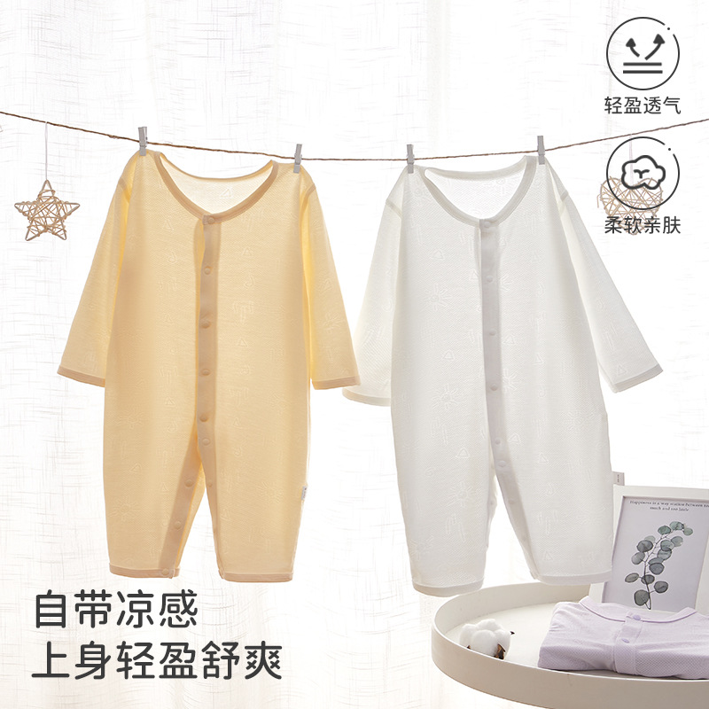 生まれたばかりの赤ちゃん服夏の薄いモデルのモーダル新生児パジャマ長袖の骨なしの赤ちゃんのワンピース