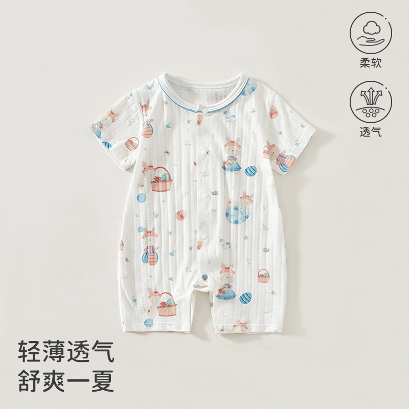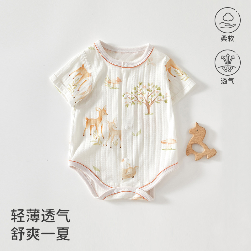 赤ちゃんのワンピース抗菌夏の薄いタイプの赤ちゃんの半袖の服の新生児の服の男女の赤ちゃんは服を登ります。