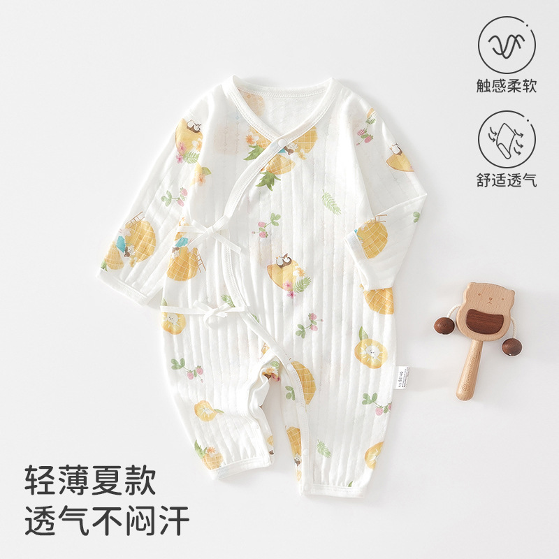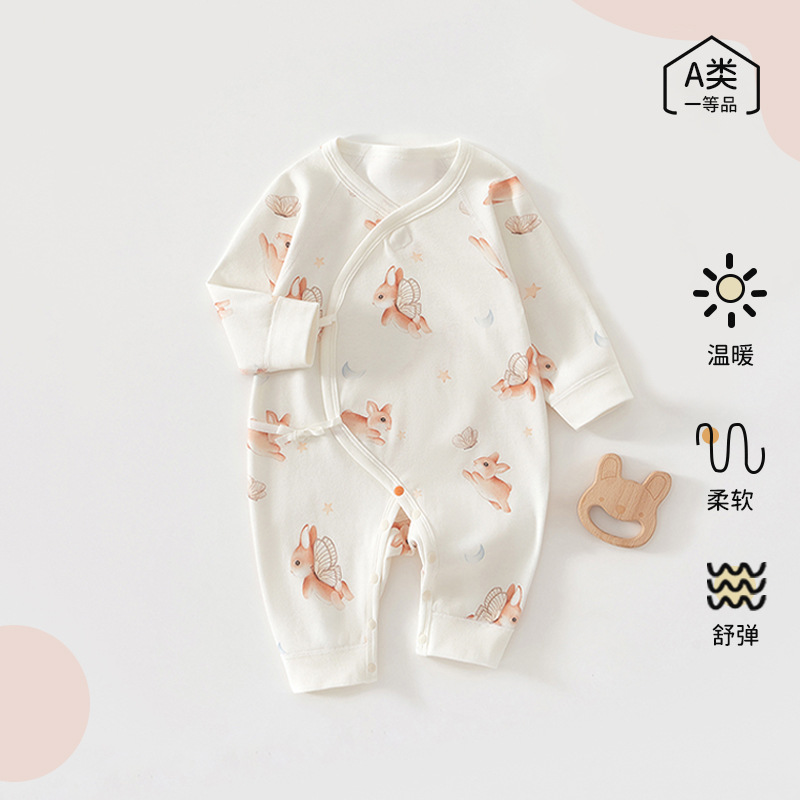 新生児半背衣春秋新作0-3-6月赤ちゃん掘り背純綿上着乳幼児パジャマ坊主