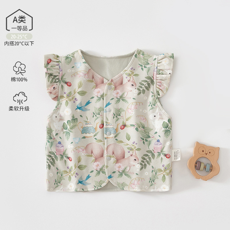 新生児の赤ちゃんの馬甲春秋の赤ちゃんの服の秋の服の肩の純綿の二重のベストの外で馬を着て女性を挟みます。
