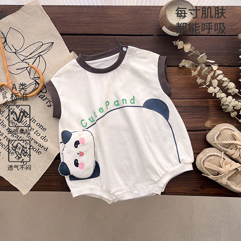 男の子の夏の薄いタイプのa類の綿の袖なしのお尻の服のかわいい漫画のパンダの乳幼児のベストは外出して服を登ります。