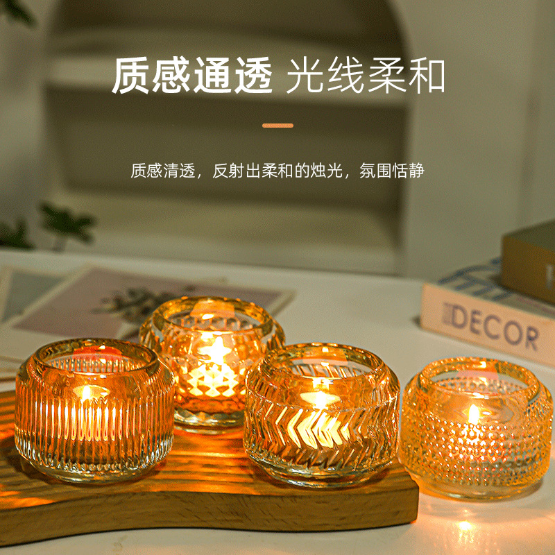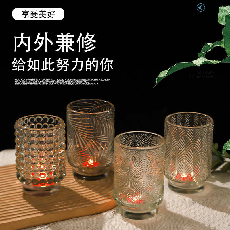 人気アマゾンレリーフガラスキャンドル缶トランペット香薫キャンドルカップガラス燭台透明ガラス空カップ