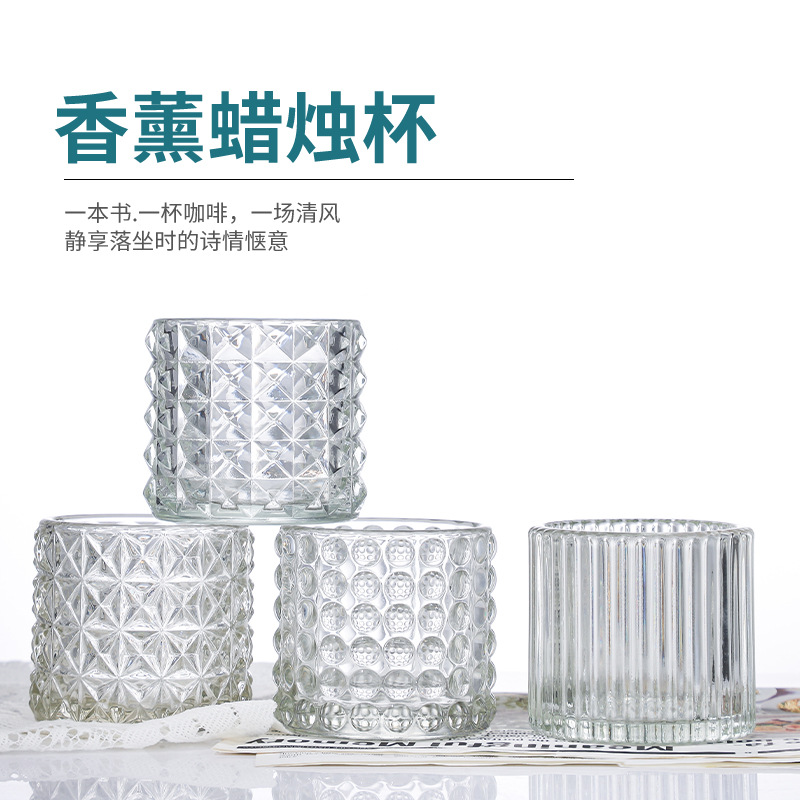 新しいレトロなレリーフアロマキャンドルカップ透明空ガラス瓶キャンドルdiy広口容器ins燭台置物