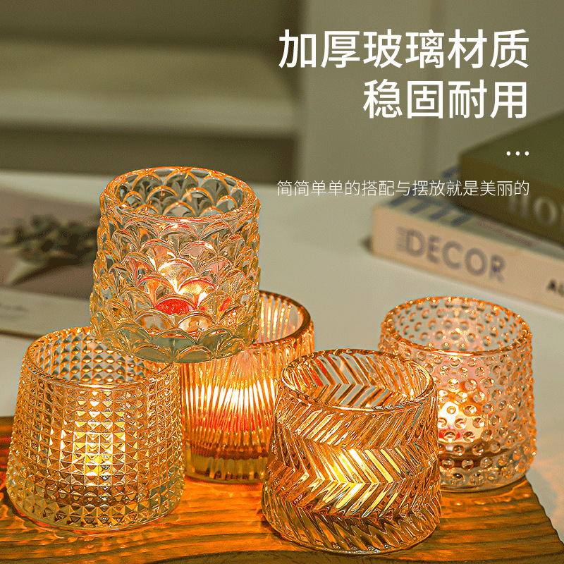 アマゾンの人気レリーフガラスキャンドルカップキャンドル缶アロマワックスDIYロマンチックな結婚式の家庭装飾品空カップ