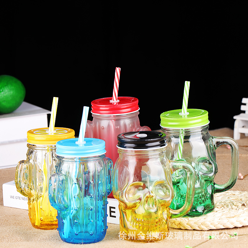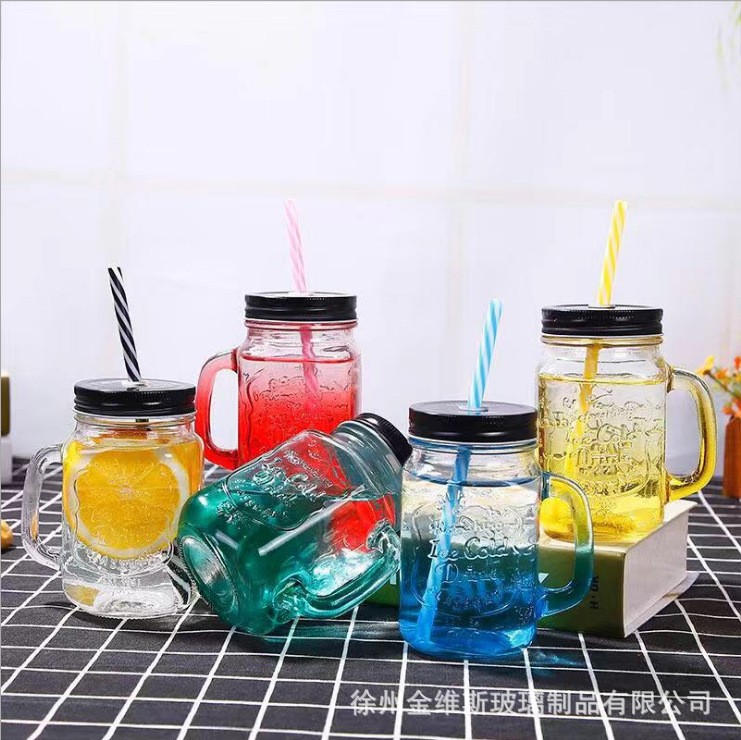 国境を越えたアマゾンガラスハンドルカップメイソンカップ透明蓋付きミルクカップ夏ジュース飲料カップ