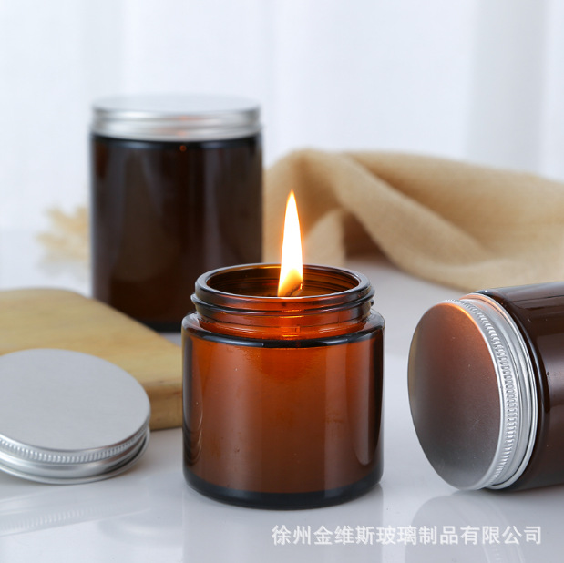 メーカーは茶色の手作りアロマキャンドルを提供しています。